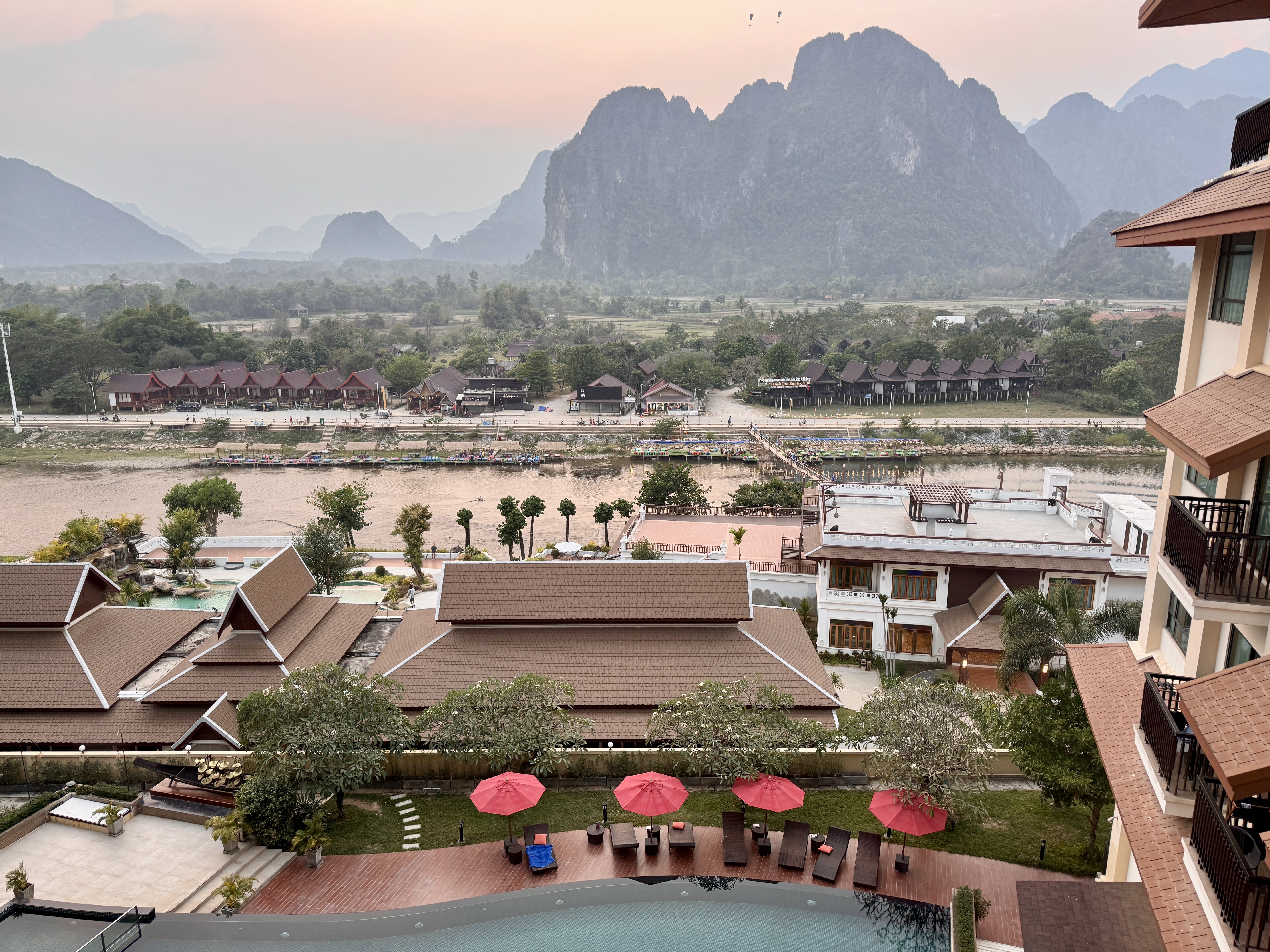 Dusk with some paragliders going past in the distance